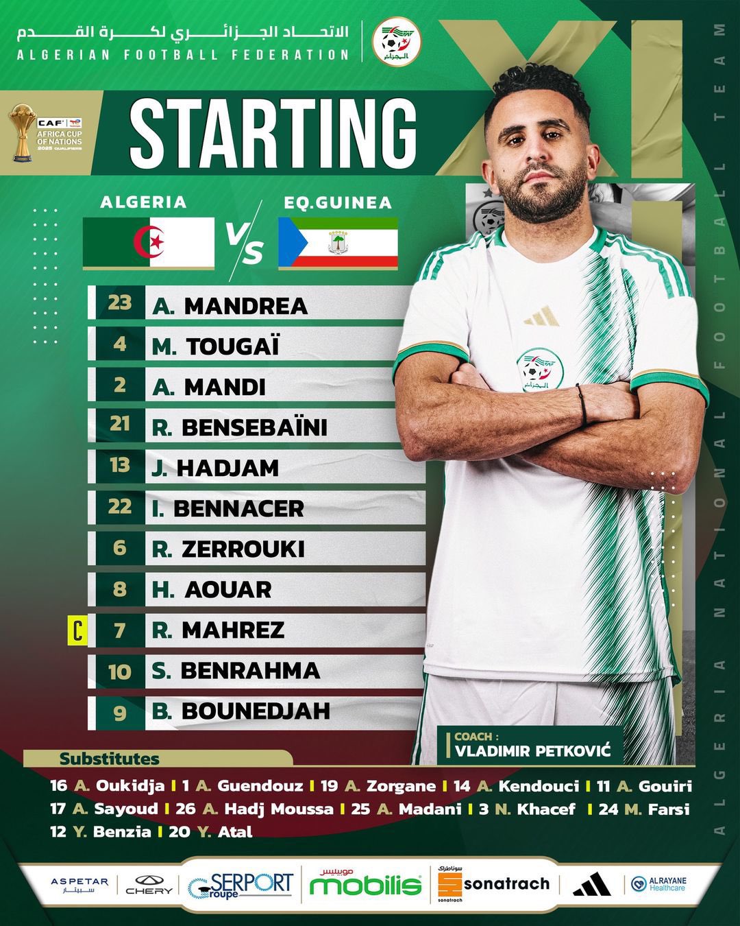 تشكيل الجزائر الرسمي أمام غينيا الإستوائية