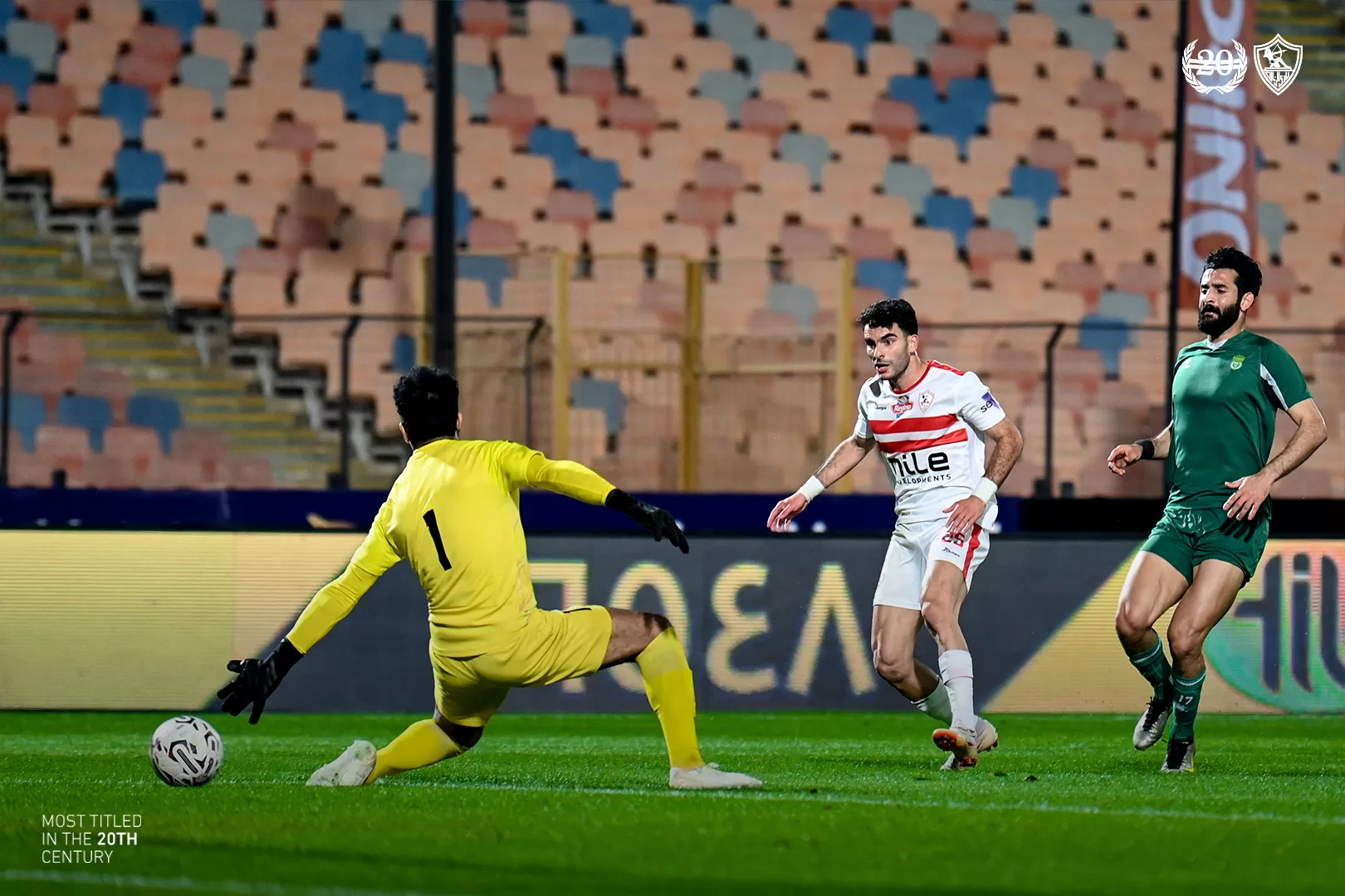 وسدد احمد سيد زيزو كرة قوية تجاه مرمي المهدي سيلمان حارس الإتحاد السكندري ولكن ارتطمت في العارضة في الدقيقة الـ 26 من زمن الشوط الأول.