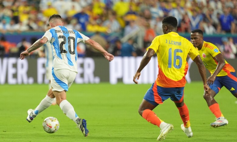 توج الفريق الأول لكرة القدم بمنتخب الأرجنتين وكولومبيا بلقب كأس كوبا أمريكا بعد فوزه الصعب على نظيره الكولومبي بهدف دون مقابل في اللقاء الذي جمع بينهم بستاد هارد روك ضمن منافسات نهائي البطولة الأمريكية الكبرى.