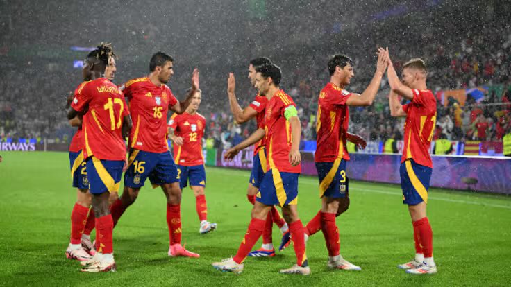 وأحرز اللاعب داني أولمو نجم المنتخب الإسباني؛ الهدف الثاني في شباك منتخب فرنسا، عند الدقيقة 25 من الشوط الأول، بتسديدة رائعة.